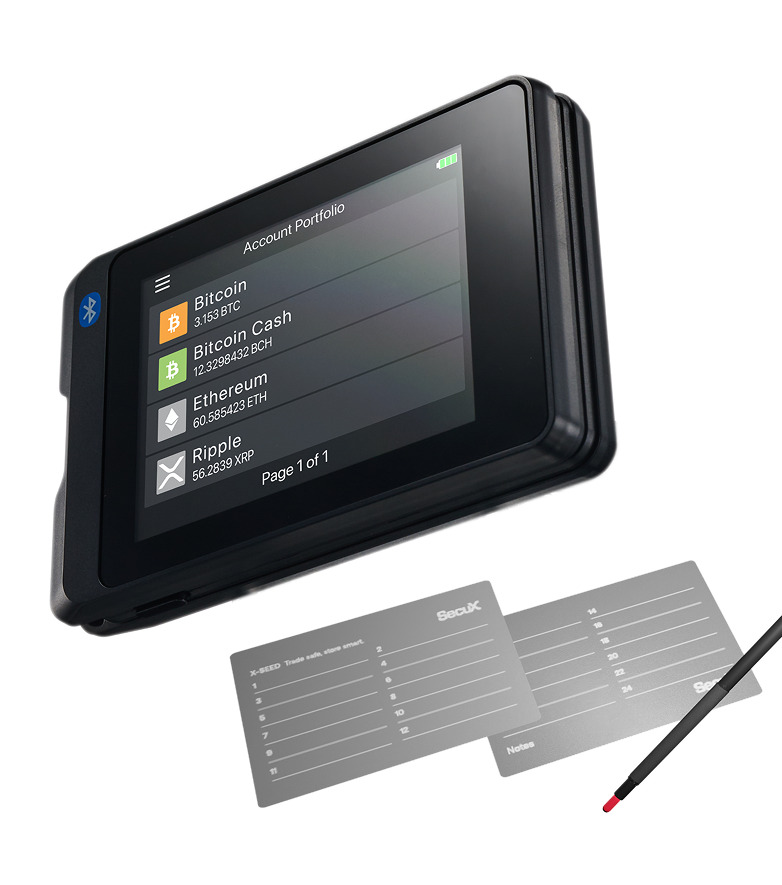 Advanced model with enhanced battery life, supports Bluetooth and USB Micro-C. Includes 2 X-SEED Recovery sheets. Features: NFT Support, Bluetooth, Touchscreen, Mobile iOS/Android, 10,000+ coins/tokens, USB Micro-C