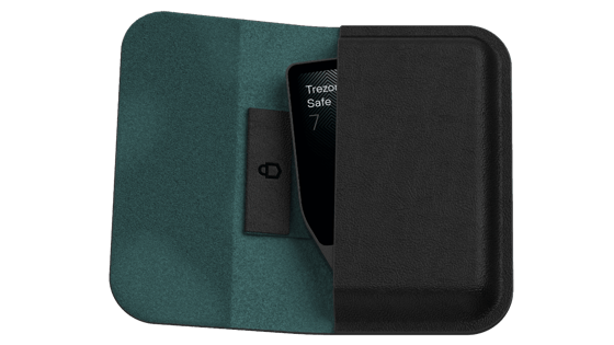 Vegan leather case that fits all Trezor models, featuring a magnetic snap closure